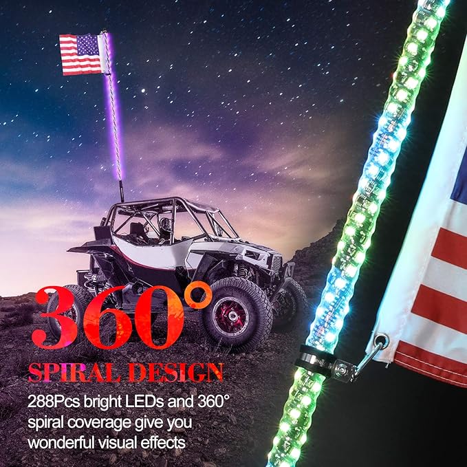 Amazon.com: omotor 4FT(1.2M) Bluetooth Control 360° Spiral LED Whip Light w/Flag [21 Modes] [20 Colors] [Weatherproof] Lig… in 2020 | 4 wheeler, Polaris rzr, Monster trucks